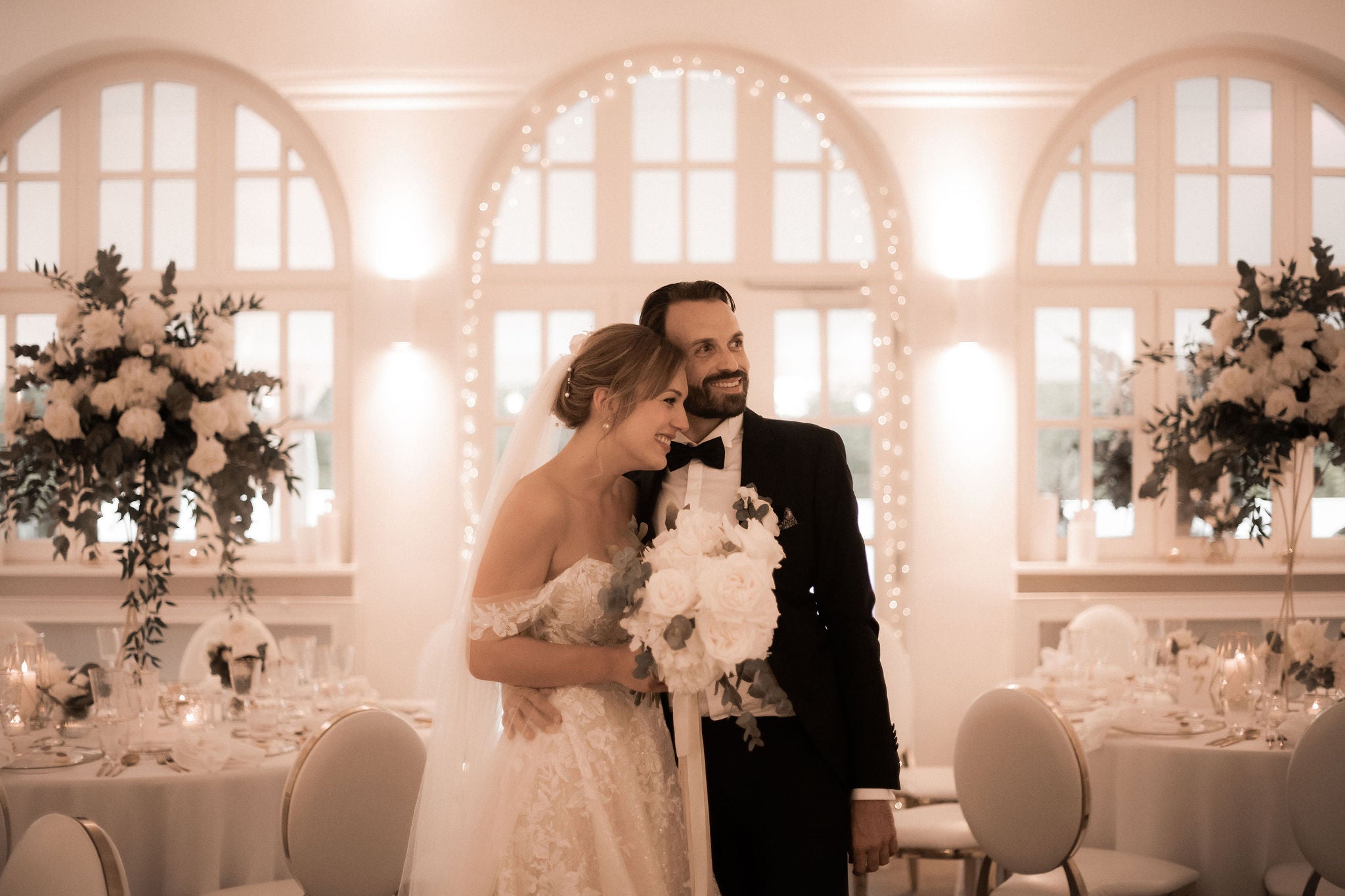 Blumenarrangements bis zur Beleuchtung. Unser Hochzeitstag fühlte sich wie ein Märchen an, und es war alles dank dieser erstaunlichen Dekorationsfirma!